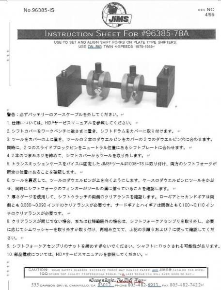 【レンタル】 JIMS 4速ミッション シフトフォークゲージ 1979-1984 ビッグツイン