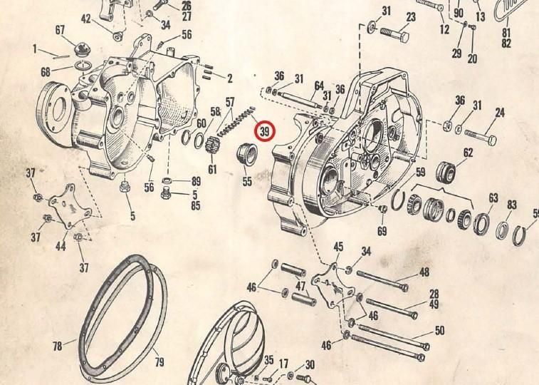 クランクケース右側、スタンダードサイズ3/16”x.800.より.0002os(オーバーサイズ)ローラーベアリングです。